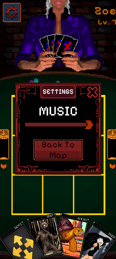 - a settings button with the ability to adjust the music volume and exit the game or board,